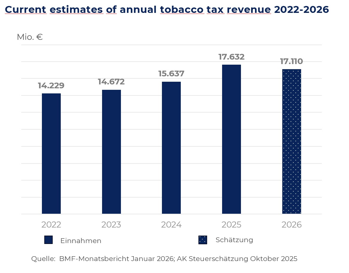 The monthly report of the German Federal Ministry of Finance of July 2021 forecasts a total of € 14.5 billion in additional revenue from the implementation of the Tobacco Tax Modernization Act: